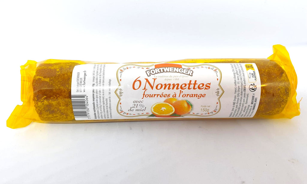 Ingredienser: HVEDEmel (oprindelse Frankrig), appelsinmarmelade 26% (glukose-fruktosesirup, appelsinpuré 9,1% (oprindelse: EU), sukker, geleringsmiddel: pektiner; surhedsregulerende middel: citronsyre, trinatriumcitrat), honning 21% (oprindelse EU, ikke-EU), invertsukkersirup, sukker, æggeblommer, hævemidler: natriumcarbonater, ammoniumcarbonater; naturlig appelsinaroma.