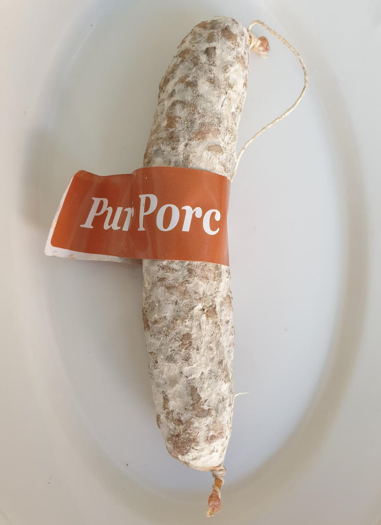 Ingredienser: Fransk svinekød, salt, Laktose, dextrose, krydderier, krydderurter, konserveringsmidler: Kaliumnitrat. Mælkesyregæring, naturlig svinetarm, naturlig flora. 167g svinekød per 100g færdig.